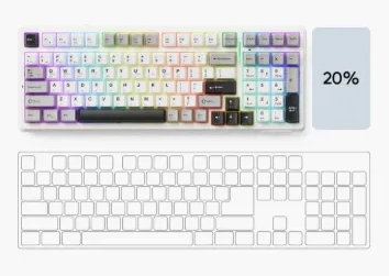 일반적인 108키 배열 키보드에 비해 약 20% 더 작은 크기로 설계하여 데스크 위 공간을 절약합니다. 키보드와 마우스를 함께 사용하기 더욱 편리하며 숫자 키도 낮춰져 있어 효율적인 사용성을 제공합니다.