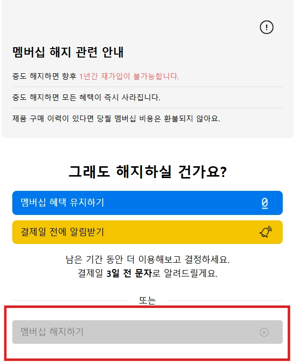④ 멤버십 해지하기를 선택합니다.