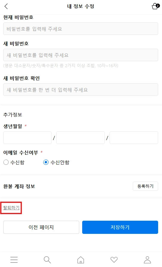 아래 경로에서 회원 탈퇴가 가능합니다.