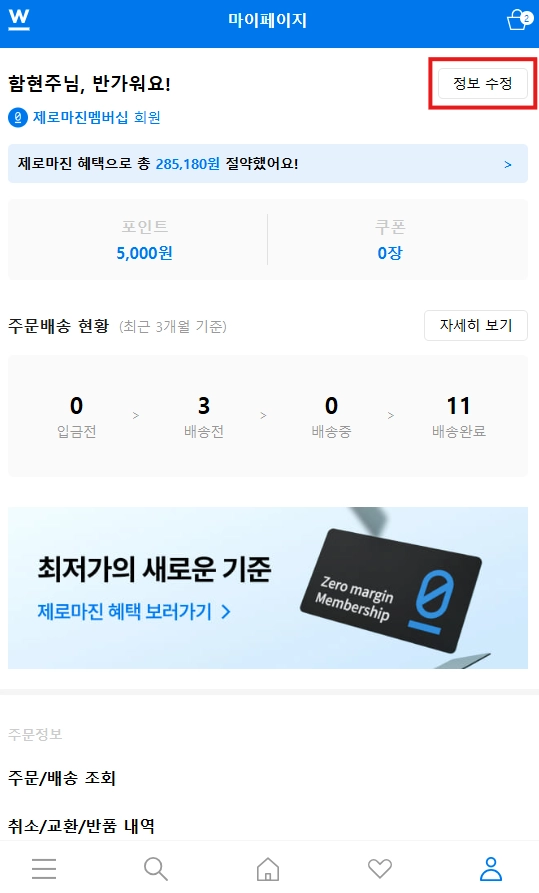 ② 회원 탈퇴 시 기존 이용 내역, 등급, 포인트, 쿠폰 등 계정이 보유한 모든 혜택이 소멸됩니다.